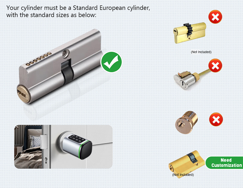 Suitable for door thickness between 35mm-60mm.Easy to replace the existing lock cylinder without drilling. Easy installation in 10 minutes.
