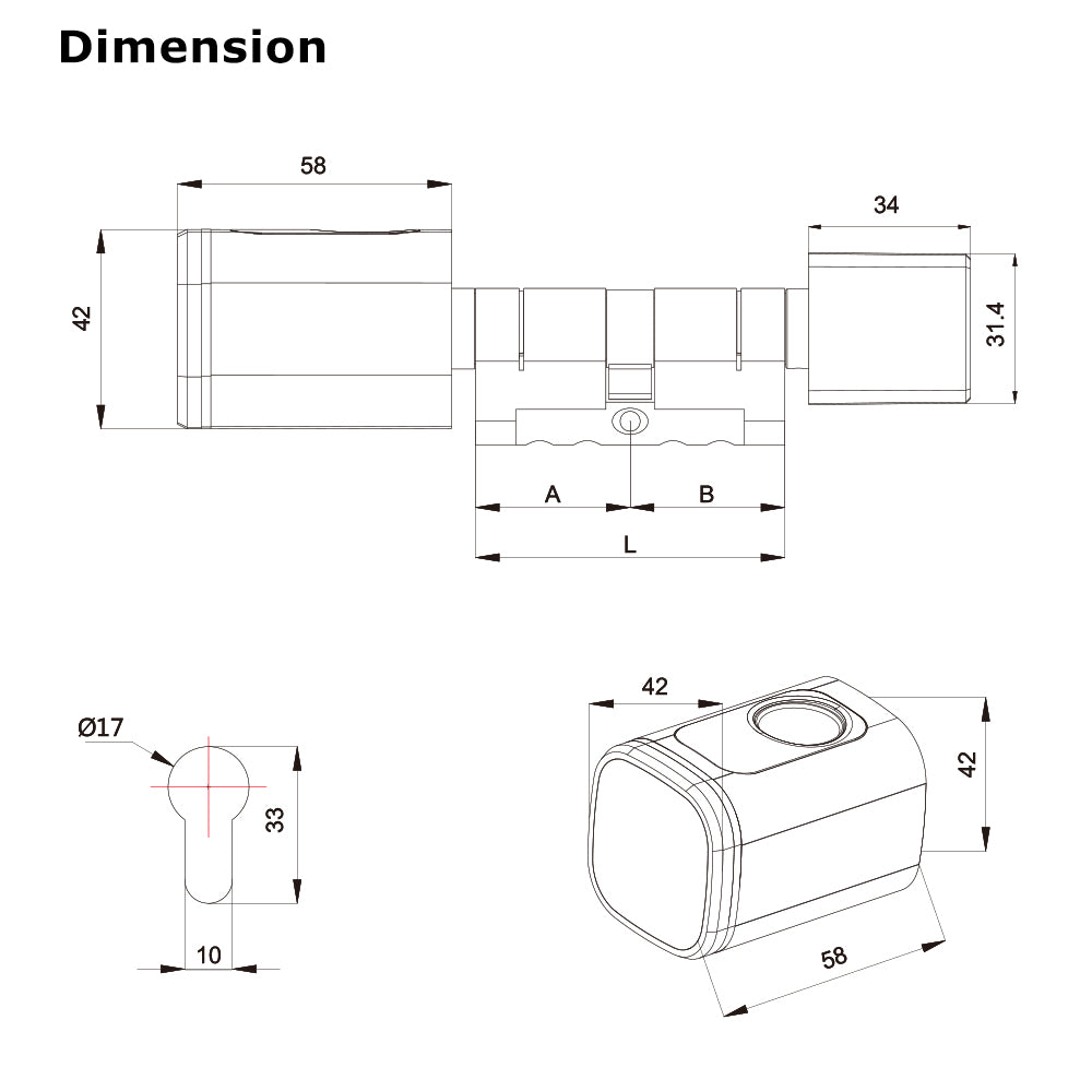 Cylinder adjustable in length, suitable for door thickness between 35mm-60mm.Easy to replace the existing lock cylinder without drilling. Easy installation in 10 minutes.